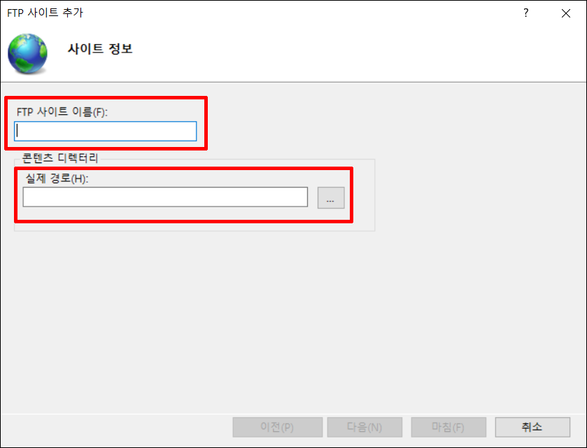 본인이 알아볼 수 있도록 FTP 사이트 이름을 지정하고 FTP로 파일을 업로드 할 경로를 지정해준다.