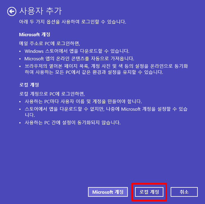 사용자 이름, 암호, 비밀번호 확인, 암호 힌트를 입력하고 다음 클릭