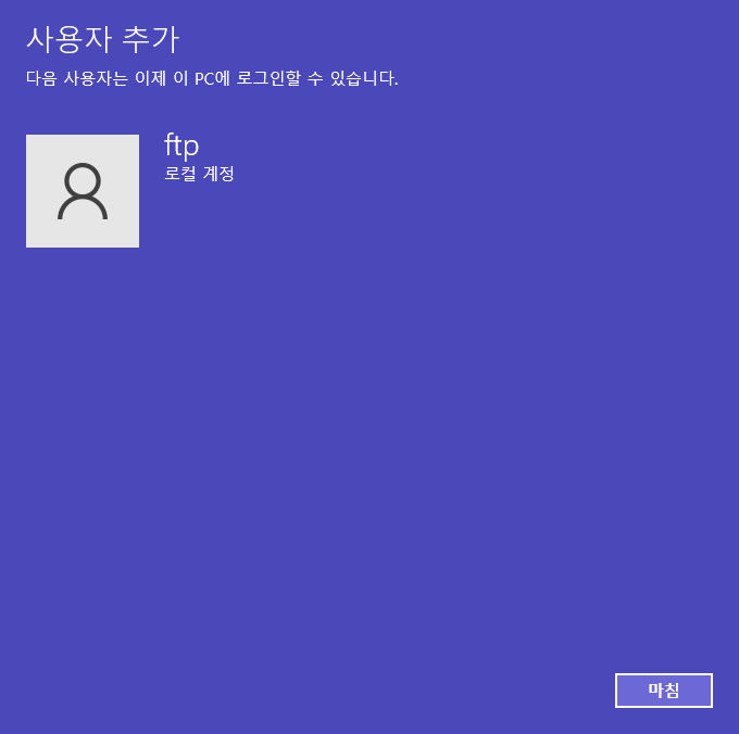 FTP 설정을 하기 전에 아무나 서버에 접근이 가능하면 보안에 문제가 생길 수도 있으므로 FTP용 사용자 계정을 추가한다.