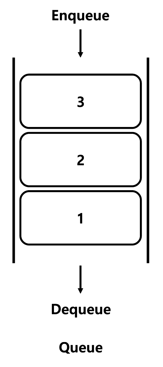 큐(Queue)는 자료구조의 한 종류로, 아래 그림과 같이 한쪽 방향에서 데이터를 넣고(Enqueue) 반대쪽에서 꺼낼 수 있는(Dequeue) 구조이다.