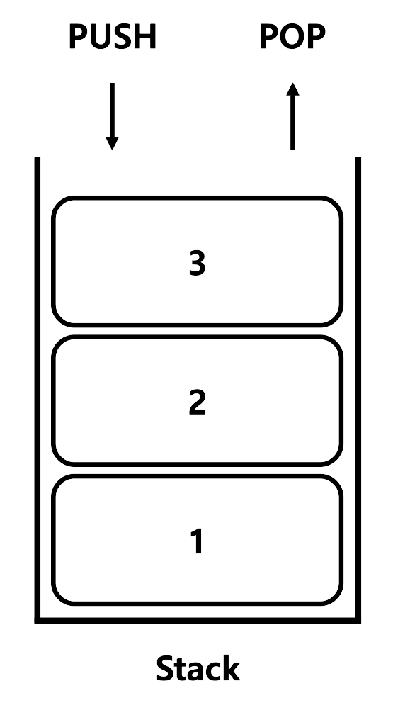 스택(Stack)은 자료구조의 한 종류로, 아래 그림과 같이 한쪽 방향에서만 데이터를 넣거나(Push) 꺼낼 수 있는(Pop) 구조이다.