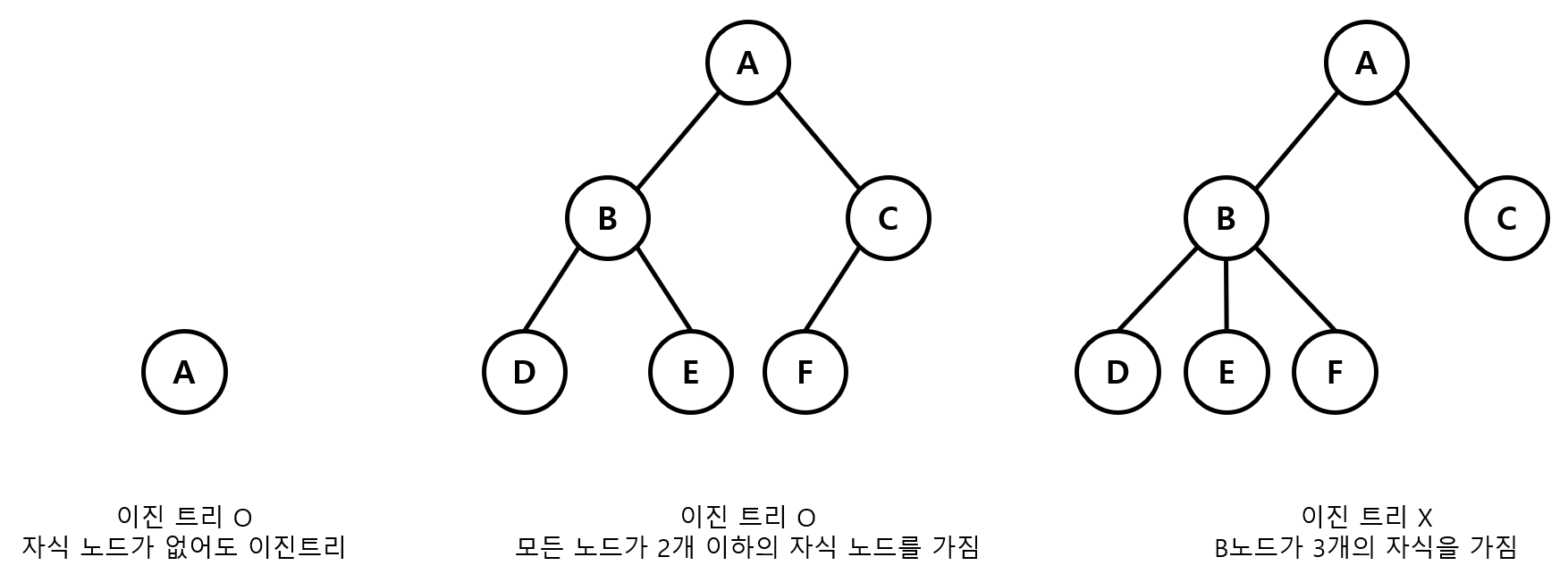모든 노드가 최대 두 개의 자식 노드를 가지고 있는 트리를 얘기한다.